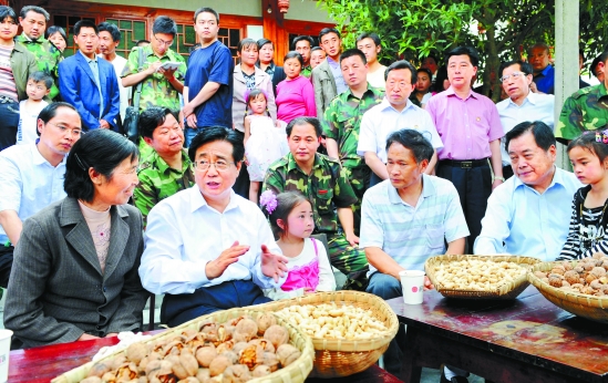6月2日下午,省委书记、省人大常委会主任赵洪祝,在四川省委副书记、省长蒋巨峰的陪同下,在青川县凉华村与村民座谈。 本报记者 黄曙林 摄