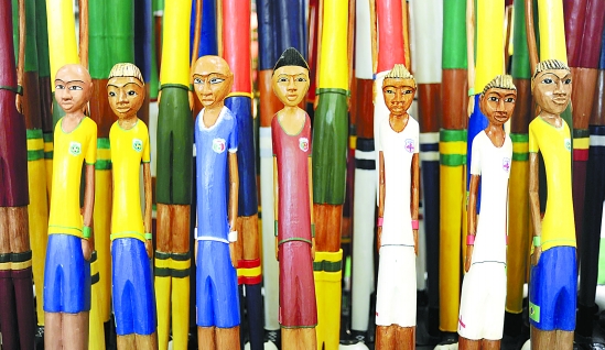 6月4日,马来西亚生产的世界杯各支参赛球队球员的木偶纪念品在南非约翰内斯堡的一家商场内销售。随着世界杯比赛的临近,各种各样的与世界杯有关的纪念品开始出现。 新华社发