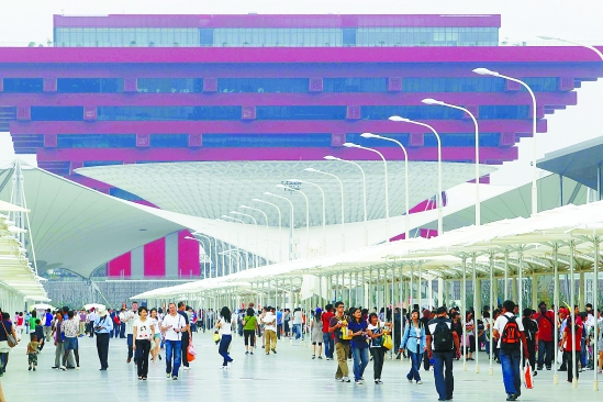 6月5日,游客经过世博园浦东园区的人行步道。当日,上海世博园单日参观人数再创新高。截至19时,当日入园人数已达51.36万。 新华社发