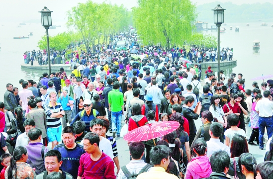 上海世博会开幕后,素有“上海后花园”之称的杭州旅游更加红火,每逢节假日,西子湖畔游人如织。 吴国方 摄