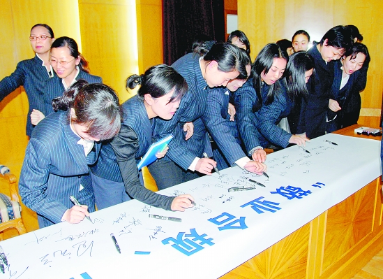 建行舟山分行日前举行“敬业合规、惜岗守职、从我做起”员工签名传递仪式,表达规范操作、杜绝风险的决心和承诺。 金华国 摄