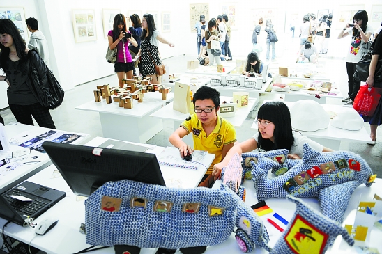 6月2日至7日,在杭州中国美术学院南山、象山校区打开校门,展出了1400余名毕业生的4000余件毕业作品。图为观众在观看毕业生的作品。