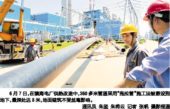 6月7日,在镇海电厂供热改造中,260多米管道采用“拖拉管”施工法被敷设到地下,最深处达8米,地面建筑不受丝毫影响。