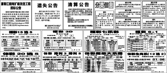 更多信息查询:浙江体育彩票网 www.zjlottery.com