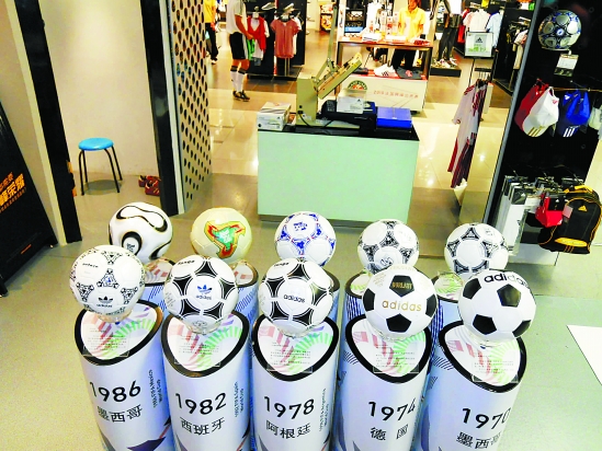 | 历届世界杯上的每一个足球都有一段故事,被球迷顶礼膜拜着。2002年日韩世界杯的“飞火流星”、2006年德国世界杯的“团队之星”等球,目前正在银泰武林店展示。 从2008年开始,杭州的商场就已经在为2010年世界杯,筹备一系列推广活动了。2008年,银泰武林店开出浙江唯一一家阿迪达斯足球店。去年年底,阿迪达斯限量发售的历届世界杯比赛用球珍藏版,就在该店出售并展示。据了解,该珍藏版当时发售每套8800元,遭遇疯抢,目前市场价格已经炒至2万元以上。 |