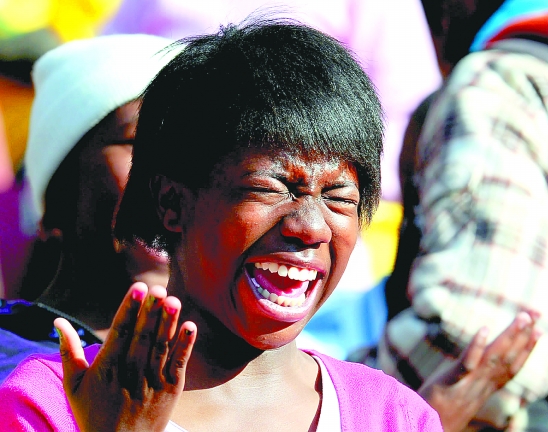 6月12日,一名南非球迷在看到马拉多纳后激动不已。 新华社发