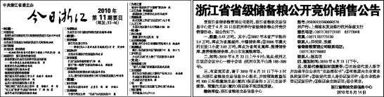 受浙江省储备粮管理公司委托,浙江省粮油交易信息中心定于6月22日在杭州举行省级储备粮公开竞价销售活动。现公告如下: