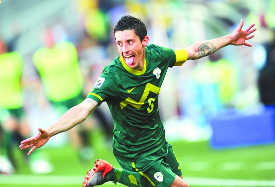 6月13日,斯洛文尼亚队球员科伦在比赛中庆祝进球。当日,在波罗瓜尼举行的C组比赛中,斯洛文尼亚队以1比0小胜阿尔及利亚队。