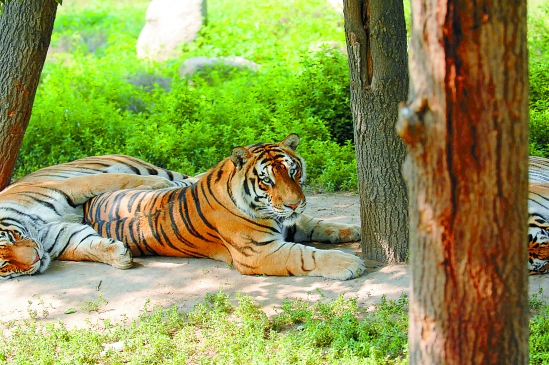 图为西安秦岭野生动物园虎区放养的老虎(6月14日摄)。