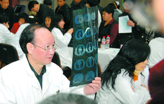 浙江省肿瘤医院最近举行大型义诊和网上答疑活动。活动受到了众多市民的欢迎。图为义诊现场专家毛伟敏为患者解答疑难。刘珊 摄