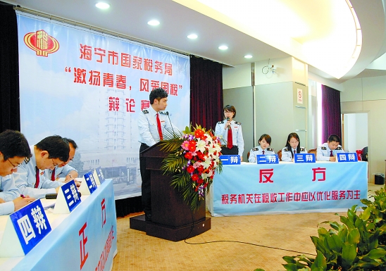 近日,海宁市国税局举行“激扬青春,风采国税”辩论赛,为80后的年轻人提供了一个展示自我的平台,推进了全局精神文明创建活动。