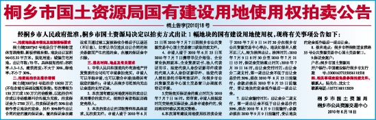 桐乡市国土资源局国有建设用地使用权拍卖公告