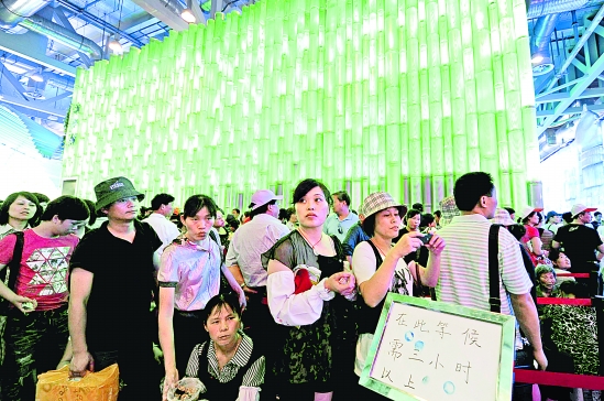 6月17日,在上海世博会浙江馆外,游客排队等待进馆参观。 本报记者 梁臻 李震宇 胡元勇 摄