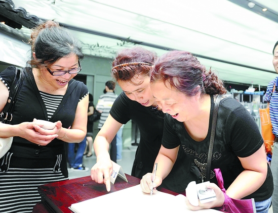 游客在浙江馆内留言。 本报记者 梁臻 李震宇 胡元勇 摄