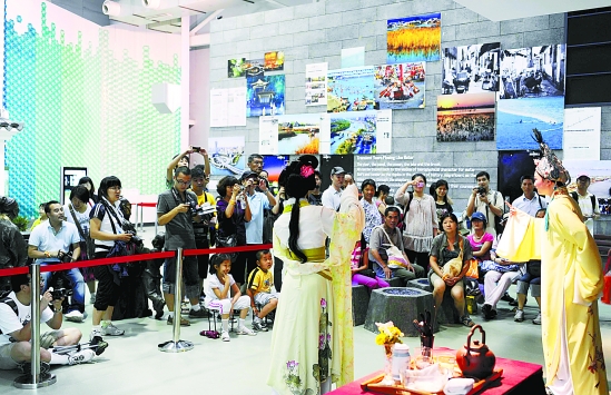 6月17日,在杭州案例馆内,游客正在欣赏杭剧表演。 本报记者 梁臻 李震宇 胡元勇 摄