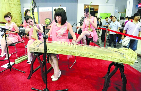 在青田主题活动日上,石雕乐器演奏让众多游客产生了浓厚兴趣,纷纷拍照留影。