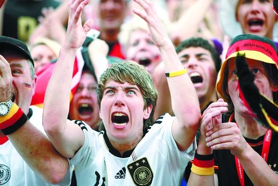 | 新华社伊丽莎白港6月18日电 塞尔维亚队以1比0力克上一轮表现抢眼的德国队,使D组的出线形势变得错综复杂。约万诺维奇在第38分钟时攻进了全场比赛的唯一入球。德国队前锋克洛泽在上半场就被罚下,“日耳曼战车”不得不在大多数时间内以10人应战。德国队在下半场还罚丢了一个点球。 下图为德国球迷在塞尔维亚队攻入一球后惊呼。 |
