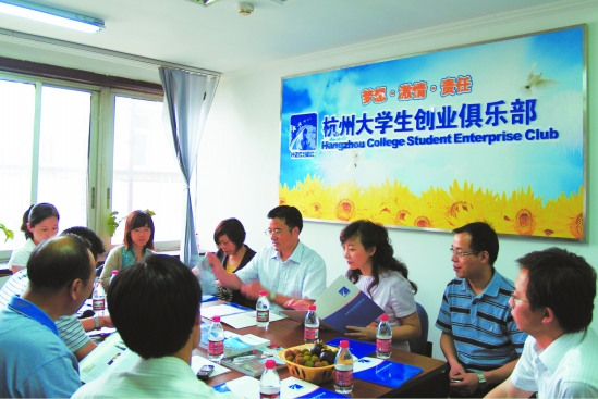 国家人力资源和社会保障部就业促进司负责人带领新华社、《人民日报》、中央电视台、中央人民广播电台四大媒体记者实地走访杭州大学生创业情况。