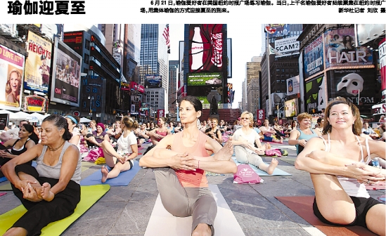 6月21日,瑜伽爱好者在美国纽约时报广场练习瑜伽。当日,上千名瑜伽爱好者陆续聚集在纽约时报广场,用集体瑜伽的方式迎接夏至的到来。新华社记者 刘欣 摄