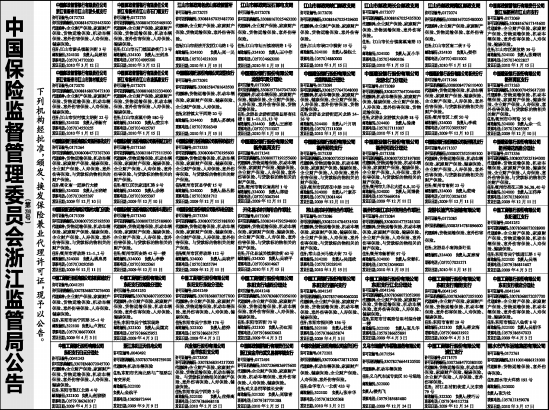 中国保险监督管理委员会浙江监管局公告
