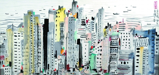 吴冠中作品《香江忆》(2004年4月6日)。 新华社发