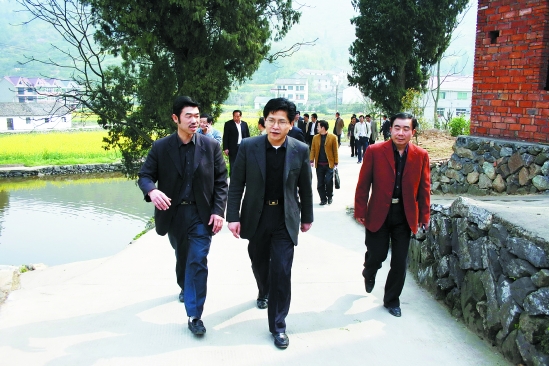 图为建德市市委书记陈春雷(中)调研农村生态整治