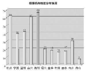 由图表十一可知,各市都有政府出资担保机构,嘉兴、杭州较多,除丽水、舟山外,各市商业型担保机构数量均超过了政策型担保机构。互助型担保机构主要集中在杭州市。