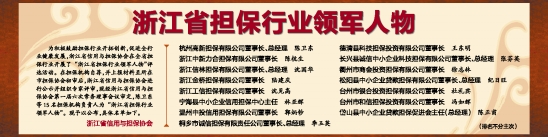为积极鼓励担保行业开拓创新,促进全行业健康发展,浙江省信用与担保协会在全省担保行业开展了“浙江省担保行业领军人物”评选活动。在担保机构自荐,并上报材料至所在市担保协会初审后,浙江省信用与担保协会进行公示并组织专家评审,现经浙江省信用与担保协会第一届六次常务理事会议审定,陈卫东等15名担保机构负责人为“浙江省担保行业领军人物”。现予以公布,具体名单如下。