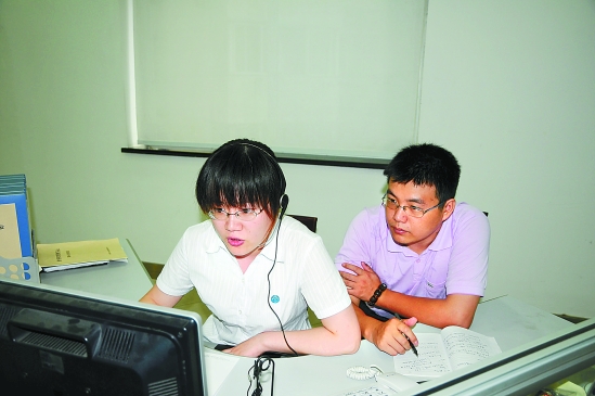 记者(右)当“81890”的学徒。钟昊 摄