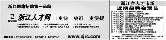 7月3日(周六) 浙江省营销、外贸、管理、财务、文秘、广告专场招聘会
