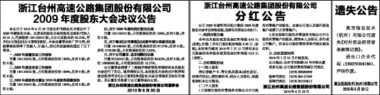 本公司于2010年6月29日在台州市群众艺术馆召开了2009年度股东大会。出席本次股东大会的股东及股东代理人共24人,代表股份104150542股,占公司总股本的48.22%,符合《公司法》及《公司章程》规定。大会由董事长林广祥主持,经鼓掌表决推举了监票人、计票人,经记名投票表决通过了以下事项: