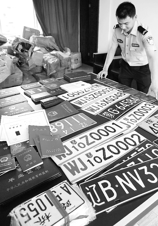 6月30日,温州瓯海警方查获假证件和牌照3万多个。郑鹏 摄