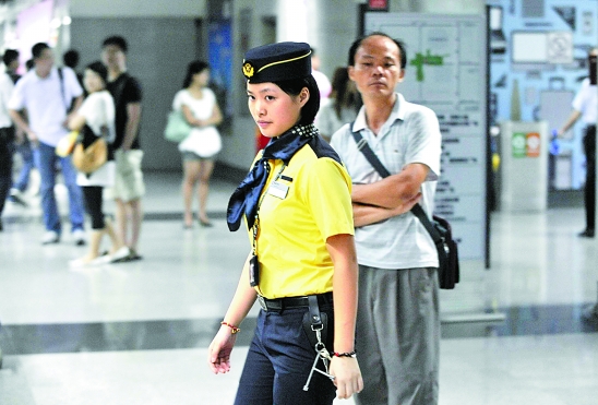 7月1日,深圳地铁龙华线(4号线)一期运营正式移交给港铁轨道交道(深圳)有限公司接管,港铁服务正式延伸到深圳。图为工作人员在深圳地铁4号线会展中心站值勤。 新华社发