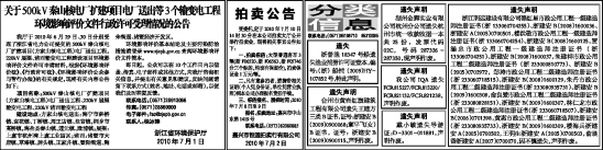 受委托,定于2010年7月10日14时30分在本公司拍卖大厅公开举行拍卖会,现将相关事宜公告如下: