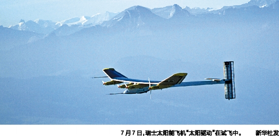 7月7日,瑞士太阳能飞机“太阳驱动”在试飞中。 新华社发