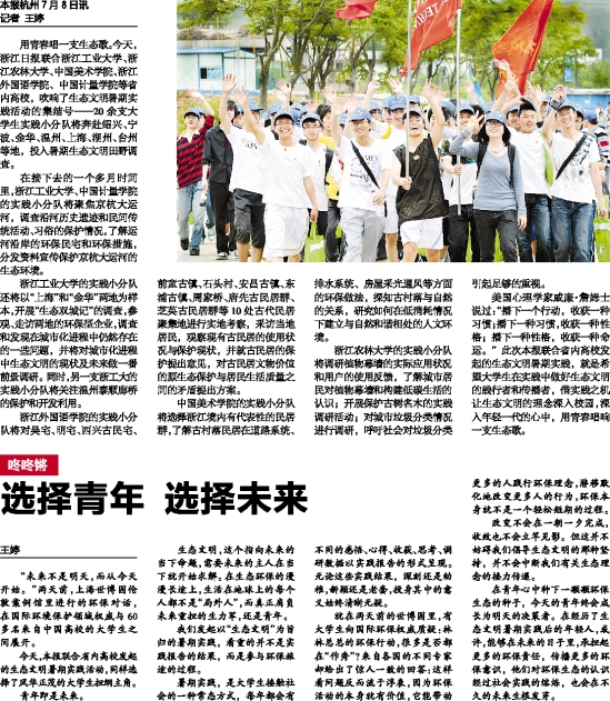 今天,本报联合省内高校发起的生态文明暑期实践活动,同样选择了风华正茂的大学生担纲主角。