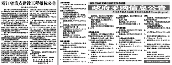 更多的采购信息及详细内容,请登录浙江政府采购网(www.zjzfcg.gov.cn)