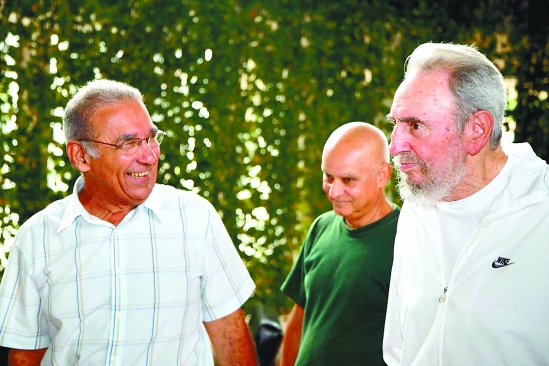 图为菲德尔·卡斯特罗(右)7月7日在古巴哈瓦那国家科学研究中心参观。 新华社发