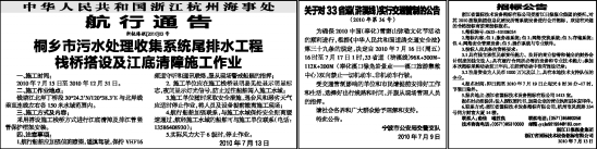 4.航行船舶加强联系,与施工水域保持安全距离缓速通过,航经施工水域的船舶可与施工单位联系(电话:13586408930);