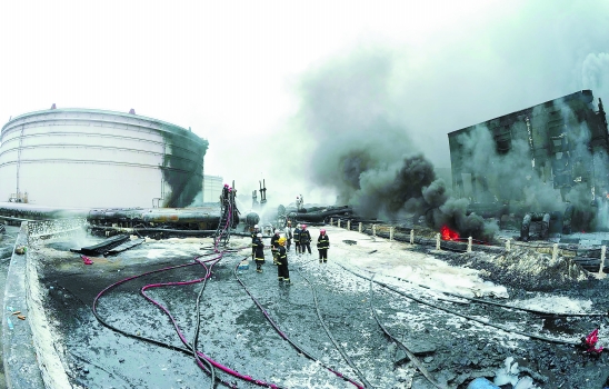 7月17日,消防队员在火灾现场扑救。 新华社记者 李钢 摄