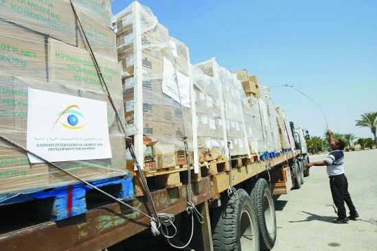 | 7月18日,装载着利比亚援助物资的卡车通过拉法口岸进入加沙。当地时间7月15日,原定驶往加沙地带的利比亚“希望号”救援船遭以色列军方阻拦后在埃及阿里什港卸下货物。据悉,这批货物共有2000吨,包括食品、医药和建筑材料等。它们此后被通过陆路运往加沙。 新华社发 |