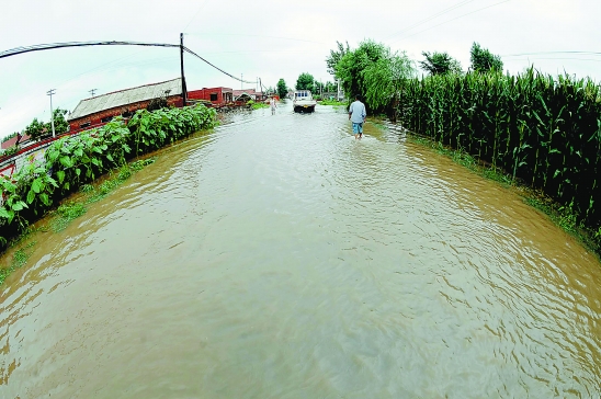 7月21日,辽宁省铁岭市铁岭县阿吉镇的公路已布满积水。