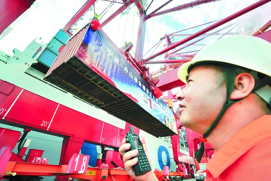 7月25日,宁波—舟山港金塘港区大浦口集装箱码头试投产,这是舟山第一座专业化集装箱码头。 通讯员 吴琳红 胡建华 记者 林上军 摄