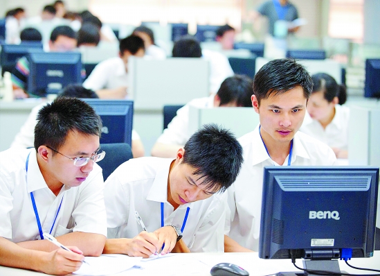| 为了提升员工素质,更好地为消费者提供优质金融服务,工行宁波市分行第十二届业务技术比赛日前鸣锣。图为选手正在比赛中。 沈颖俊 谢一芳 摄 |