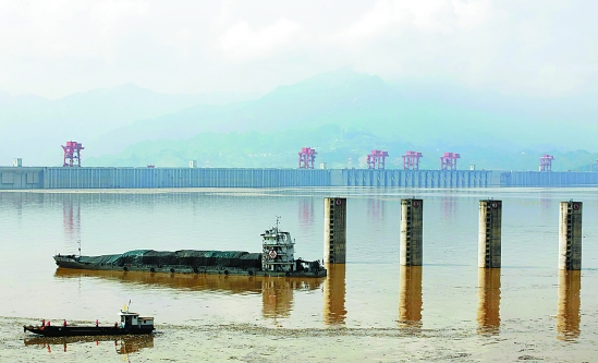 7月26日,船舶在三峡大坝上引航道行驶。 新华社发(文振效 摄)
