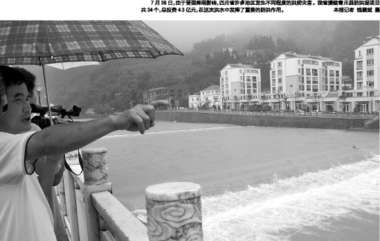 7月26日,由于受强降雨影响,四川省许多地区发生不同程度的洪涝灾害。我省援建青川县防洪堤项目共34个,总投资4.3亿元,在这次洪水中发挥了重要的防洪作用。 本报记者 钱璐斌 摄