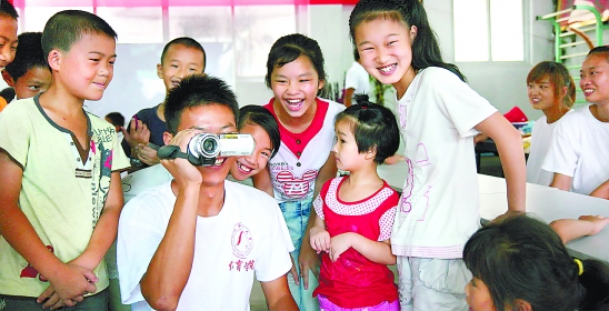 昨日,志愿者服务队来到乐清市乐成镇社区暑期学校,为200多名外来民工子女免费补习,并一起做游戏。