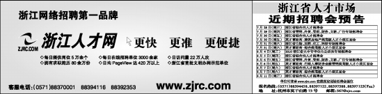 8月 6日(周五) 浙江省营销、外贸、管理、财务、文秘、广告专场招聘会