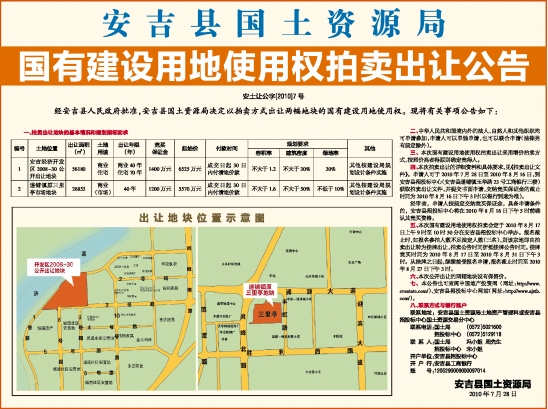 联系地址:安吉县国土资源局土地资产管理科或安吉县招投标中心国土资源交易分中心