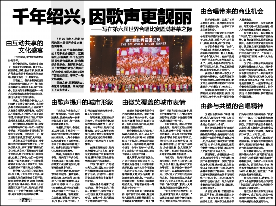 绍兴借合唱提高了城市形象,借合唱走向了世界。在歌声中,绍兴完成了一次与世界文明的交流与对话。在歌声中,绍兴被赋予了高雅的城市气质。
